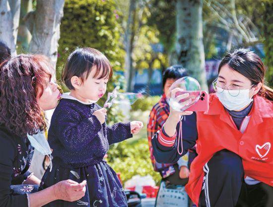 同安区发动志愿力量,开展文明实践活动。图为同安区志愿者在活动中服务群众。(通讯员 黄维明 摄)