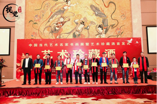 中国是酒的国度,也是书画的国度,中国书画艺术和酒文化都有着千年的历史,传承着中华优秀文化传统,纵观古今,酒与书画结下了难以割舍的不解之缘。那些占尽风流的书画艺术家们,更是“雅好山泽嗜杯酒”,两者的完美融合,于是便有了艺术珍藏酒的诞生,它的每一步成长,都离不开在座的每位艺术家的精心付出,每一幅作品都倾注了艺术家满满的心血和智慧,是你们的才华,让艺术珍藏酒赋有了灵魂,有了故事,而我们需要把这个故事延续和传承下去,成为一段佳话,成为人们品味艺术,享受生活的一部分。在中国人的精神世界里,已成为一种民族文化载体和精神象征,享誉世界的“国家名片”,走进千家万户!