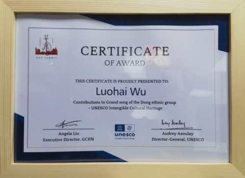 今年是我国加入联合国教科文组织《保护非物质文化遗产公约》20周年,在新的历史起点上,2024年9月中国布依族古歌传承人巫罗·海和她的团队,以实际行动唱响中华民族非遗古乐的世界音声,荣获联合国教科文组织文化遗产传承贡献奖(侗族大歌)殊荣!为文化强国建设和推进中国式现代化非遗古乐实践贡献精神力量!