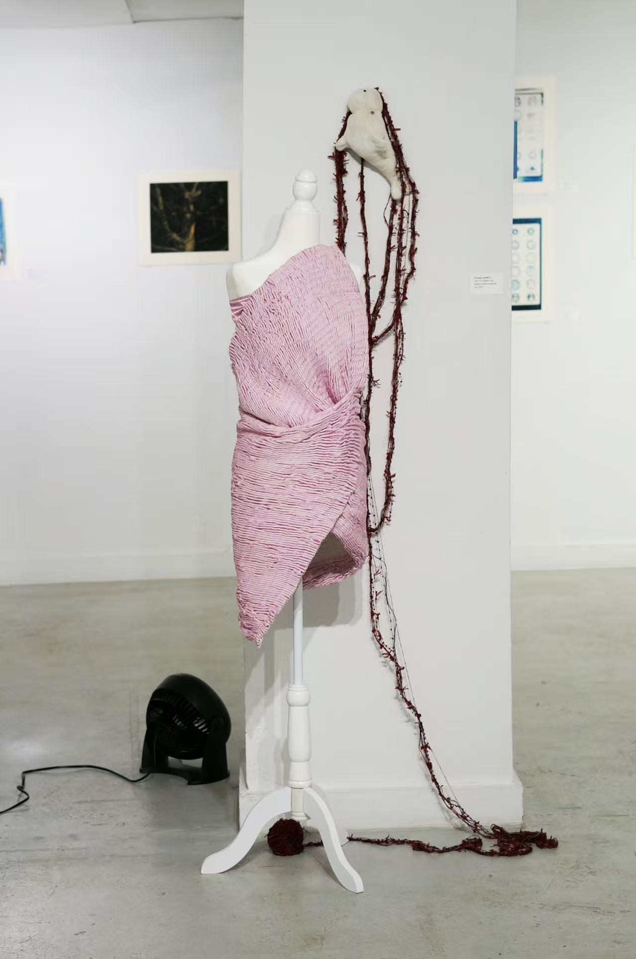 李霈阳深耕纺织艺术、时装设计与布艺创作,擅长融合东方美学与西方当代艺术语言。她的作品以精湛工艺和深刻社会议题探讨广受赞誉,聚焦生态危机、核污染等议题,用超现实意象引发公众反思。此次参展的《Live Sashimi x Aqin》,以 “液态褶皱” 技术结合中国传统刺绣,借海洋生物意象探讨伦理边界,与展览主题深度契合。